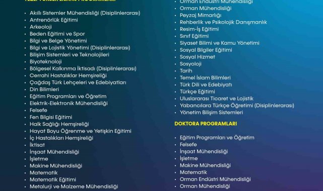 Bartın Üniversitesi (BARÜ) Lisansüstü Eğitim Enstitüsünün 2025-2026 akademik yılı bahar yarıyılında 45 tezli yüksek lisans ve 10 doktora programına öğrenci alımı devam ediyor.