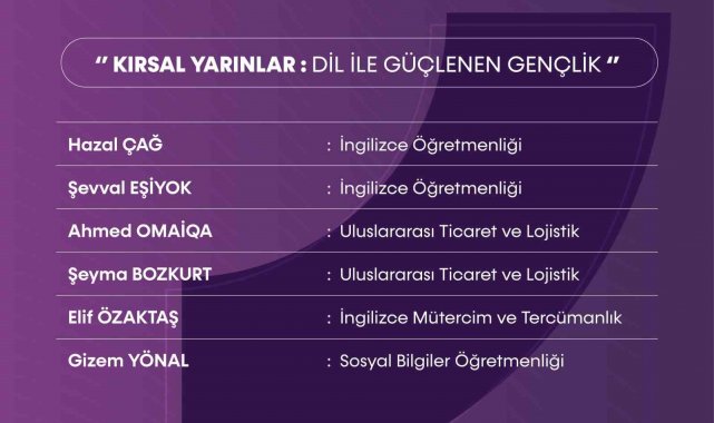 "Kırsal Yarınlar: Dil ile Güçlenen Gençlik" başlıklı projeyle çocukların dil öğrenme süreçlerini desteklemek üzere etkileşimli yöntemlerle İngilizce atölyeleri düzenlenecek. Ayrıca kültürel etkinlikler ve dijital araçlar aracılığıyla öğrenme süreçleri daha verimli ve eğlenceli hale getirilecek. Projenin kırsal bölgelerde yaşayan 10-18 yaş arası çocuklara İngilizce öğretiminde eğitimde fırsat eşitliği çalışmalarına katkı sunması hedefleniyor.