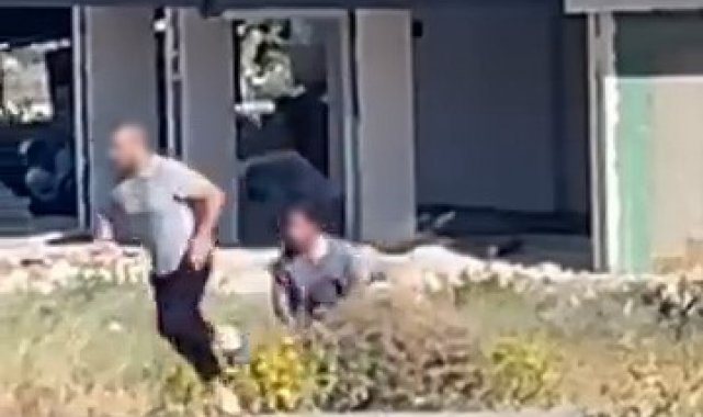 Çevredeki vatandaşların cep telefonuyla kaydettiği görüntülerde, kavga eden iki kişinin yere düştüğü ve daha sonra taraflardan birinin olay yerinden kaçtığı anlar yer aldı.