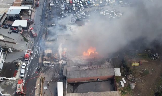 Başakşehir'de çıkan yangında kimya deposundan alevler yükseldi. Ara ara patlamaların da yaşandığı yangını söndürme çalışmaları sürüyor. Alev alev yanan depo havadan görüntülendi. Öte yandan deponun yakındaki otoparkta bulunan araçlar çekici yardımıyla kaldırılmaya çalışıldı.