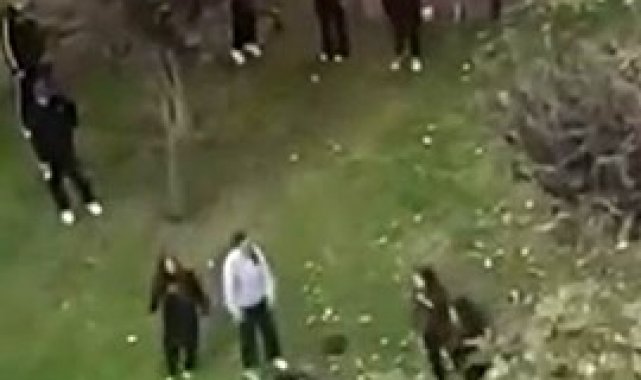Görüntülerde öğrencilerin birbirlerine tekmelerle saldırdığı, anlar yer aldı.