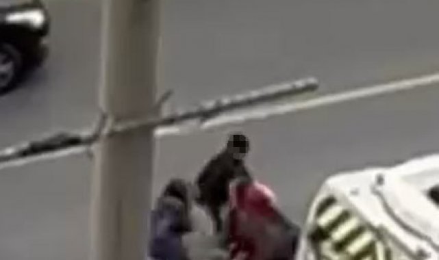 Kavga sırasında, hafif ticari araç sürücüsü, motosikletli babaya yanında bulunan küçük çocuğun gözleri önünde saldırdı. Taraflar birbirlerine tekme, yumruk ve kaskla vururken, çevredeki vatandaşlar kavgayı ayırmakta güçlük çekti. Yaşanan kavga anları, olay yerinde bulunan bir vatandaş tarafından cep telefonu kamerasıyla saniye saniye kaydedildi.