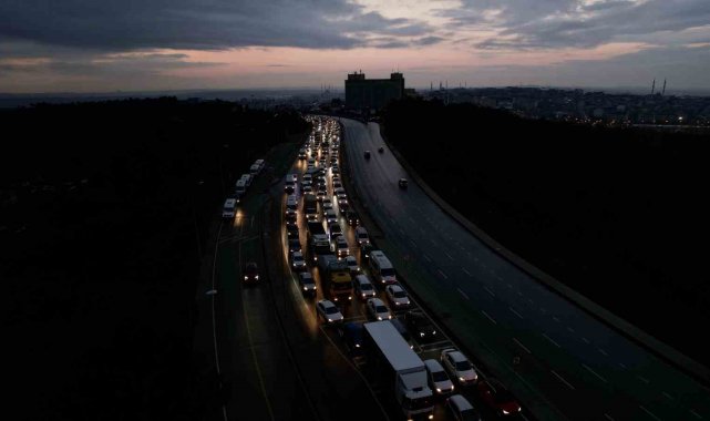 İstanbul Başakşehir'de 3 İETT otobüsünün karıştığı zincirleme trafik kazası, bölgede uzun araç kuyruklarına neden oldu. Arnavutköy-Sultangazi hattında trafik adeta durma noktasına gelirken, yaşanan yoğunluk havadan görüntülendi.