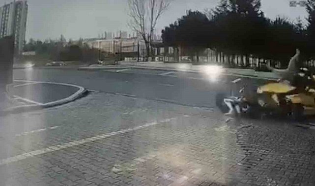 Kaza anı ise güvenlik kamerası tarafından saniye saniye görüntülendi. Görüntülerde motosikletin cadde üzerinde ilerlediği, taksinin dönüş yaptığı sırada iki aracın çarpıştığı ve sürücünün savrulduğu anlar yer aldı.