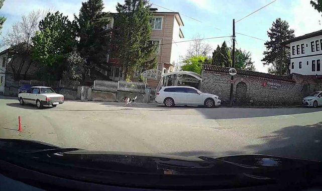 Olay, Safranbolu ilçesi Aslanlar Sokak'ta meydana geldi. Seyir halindeki bir otomobilin kamerasına yansıyan görüntülerde, başıboş bir köpeğin bir evin önünden çaldığı tavuğu alıp hızla uzaklaştığı görüldü. Görüntülerde köpeğin yolun karşısına geçtiği ve korna sesi sonrası koşarak gözden kaybolduğu anlar yer aldı. Öte yandan aynı mahallede daha önce de benzer olayların yaşandığı öğrenildi.