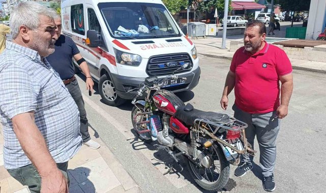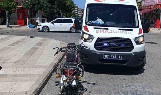 Antalya'nın Manavgat ilçesinde hafif ticari araç ile çarpışan ve durumunun iyi olduğunu söyleyerek hastaneye gitmek istemeyen motosiklet sürücüsünü yoldan geçen bir vatandaş tarafından ikna edilerek ambulansa bindirildi. Kaza anları ise güvenlik kamerasına yansıdı.