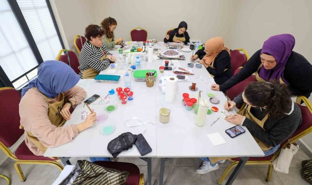 Başiskele Belediyesi Meslek Edindirme ve Hobi Kursları (BAŞ-MEK) bünyesinde açılan atölyede kadınlar, geleneksel el sanatlarından çini ve seramik eğitimi alıyor.