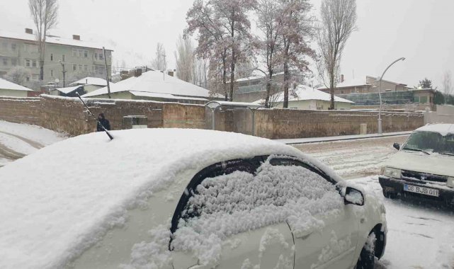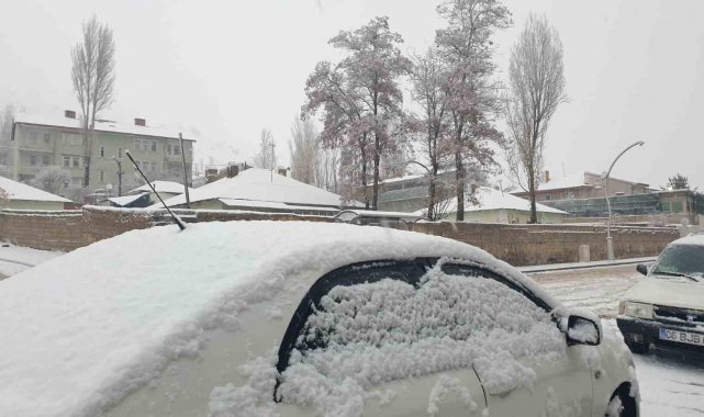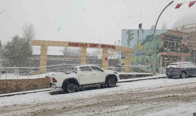 Van'ın Başkale ilçesinde etkili olan kar yağışı ilçeyi beyaza bürüdü.