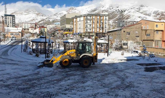 İlçede etkili olan kar yağışının ardından belediye ekipleri de cadde ve sokaklarda çalışma başlattı.