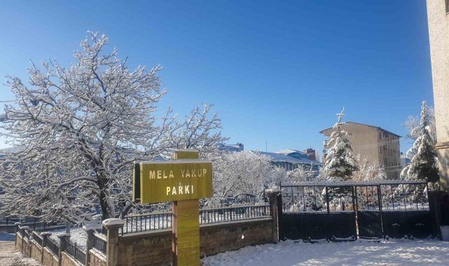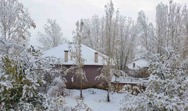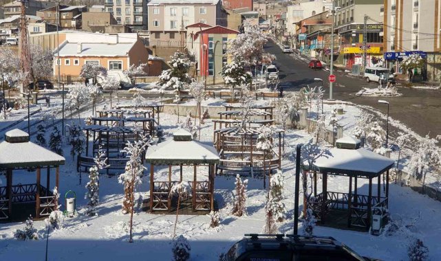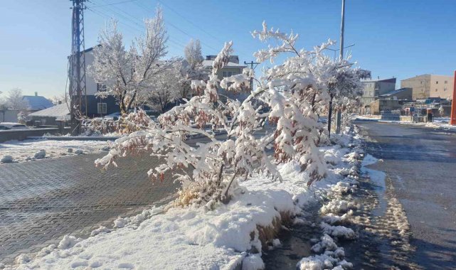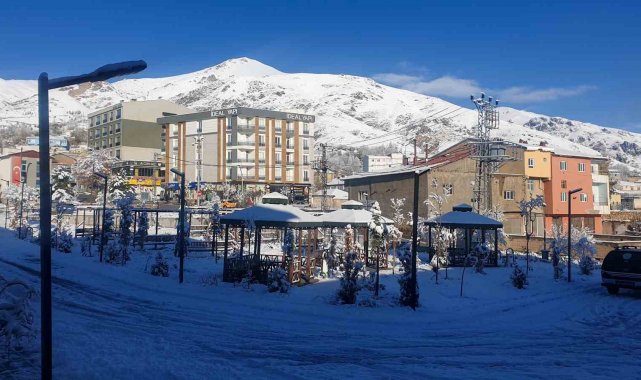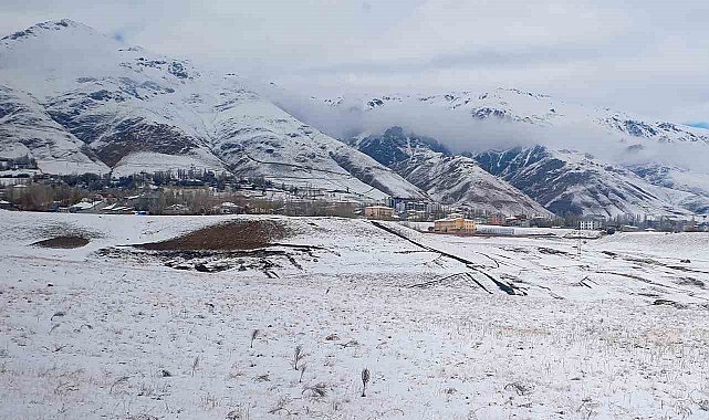 Van'ın Başkale ilçesi, etkili olan kar yağışı nedeniyle beyaza büründü.