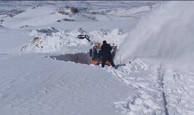 Van'ın Başkale ilçesinde yer yer 3 metreyi bulan kar tünellerinde ekiplerin yol açma çalışmaları devam ediyor.