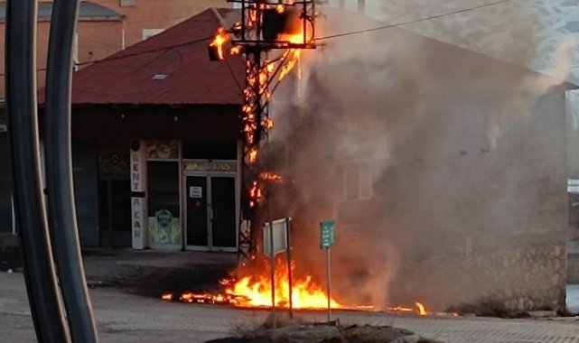 Van'ın Başkale ilçesinde sabah saatlerinde bir elektrik direğinde henüz bilinmeyen bir nedenle yangın çıktı.