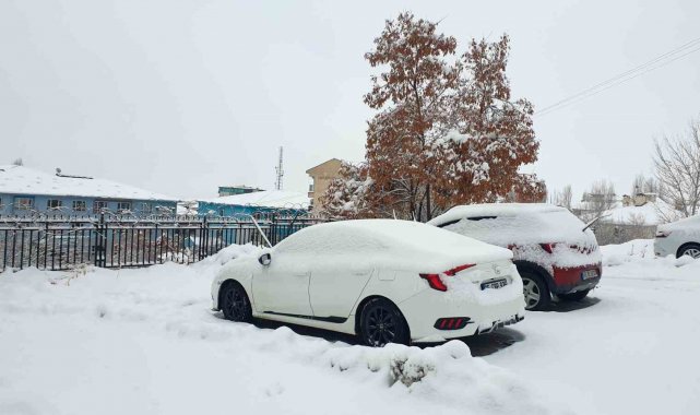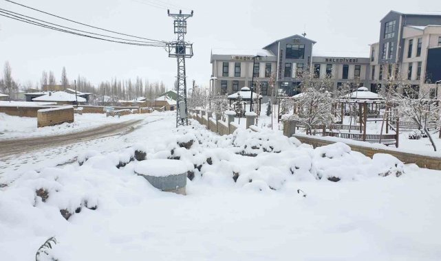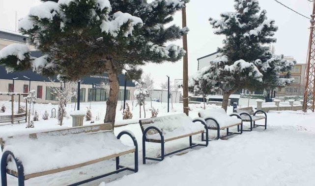 Van'ın Başkale ilçesinde, akşam saatlerinde başlayan kar yağışı sonrası ilçe beyaza büründü.