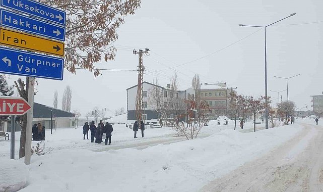 Van'ın Başkale ilçesinde etkili olan kar yağışı hayatı durma noktasına getirdi.