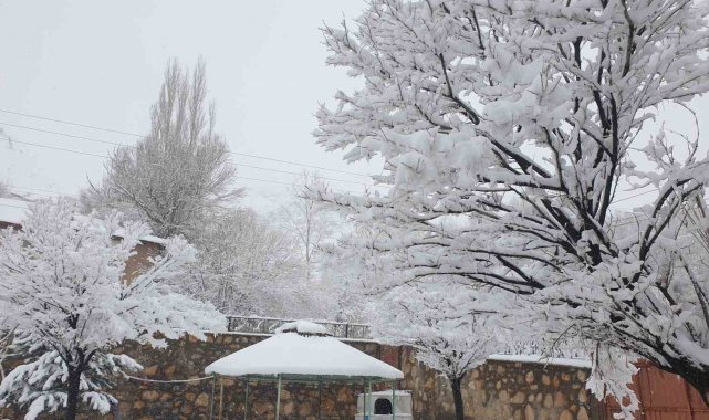 Başkale'de kar yağışıyla birlikte meyve ağaçlarının üzeri karla kaplandı. Bahar mevsiminde çiçek açması beklenen ağaçların kar altında kalması dikkat çekti.