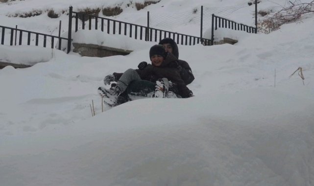 Öte yandan okulların tatil edildiği ilçede çocuklar da karda kayıp karın keyfini çıkardı.