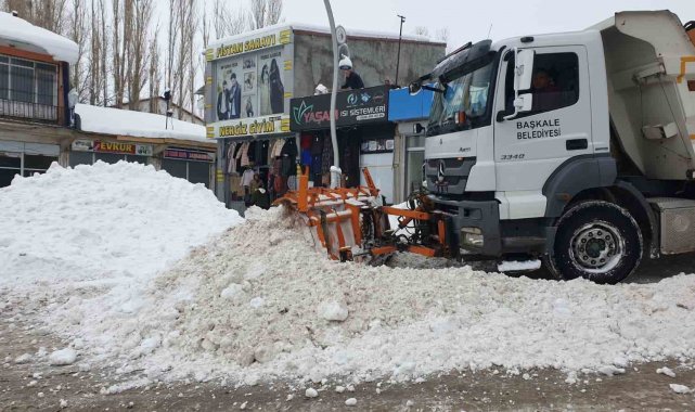 Başkale Belediyesi şehir merkezinde yoğun kar mesaisi yapıyor. Ekipler, 4 kamyon, 6 iş makinesi ve 20 personelle caddelerde biriken kar yığınlarını kamyonlarla ilçe dışına taşıdı. Esnaflarda kar kürekleriyle işyerlerinin önü ve kaldırımları temizleyerek belediye ekiplerine yardımcı oldu.