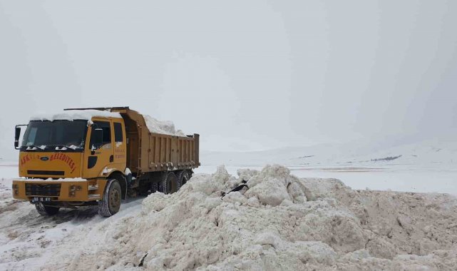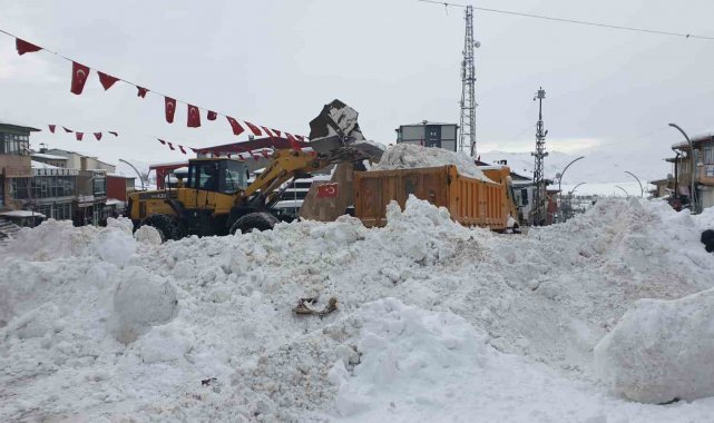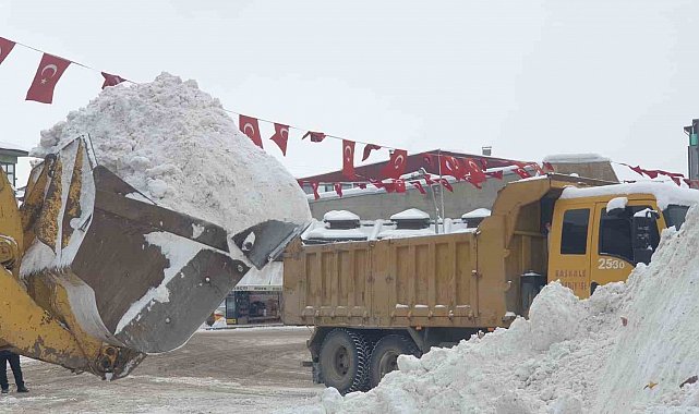 Başkale'de kış sert geçiyor, kar yığınları kamyonlarla ilçe dışına taşınıyor