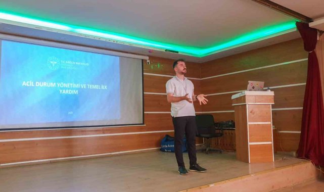 Konuşmaların ardından ilçe saglik personelinin sunumu ile öğretmenlere sağlıklı yaşam ve ilk yardım eğitimi verildi.