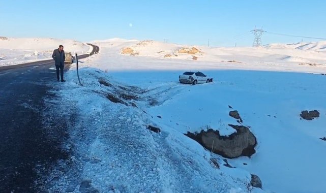 Van'ın Başkale ilçesinde otomobil buzlanma etkisiyle kontrolden çıkıp şarampole düştü.