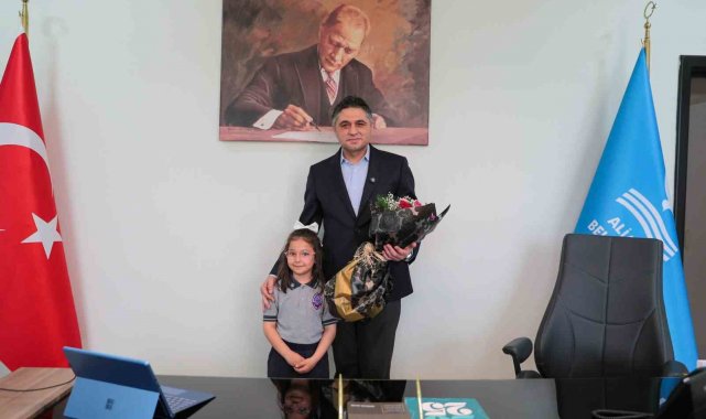 Aliağa Belediye Başkanı Serkan Acar, 23 Nisan Ulusal Egemenlik ve Çocuk Bayramı'nda makamını temsili olarak Şehit Çavuş Bülent Kula İlkokulu 1. sınıf öğrencisi Burçin Ateş'e devretti.