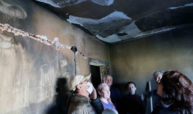Başkan Aras Köksal yangında evleri hasar gören aileyi ziyaret etti