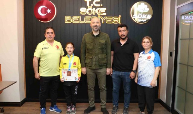 Söke Belediye Başkanı Dr. Mustafa İberya Arıkan, Türkiye Karate Şampiyonası'nda Türkiye üçüncüsü olarak büyük bir başarıya imza atan ve "Milli Sporcu" unvanını kazanan Sökeli sporcu Gülşen Görecek'i makamında ağırladı.