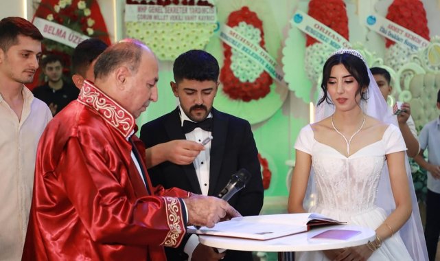 Alaca Belediye Başkanı Şerif Arslan dünyaevine giren kızı Zeynep Arslan ile Samet Özdemir'in nikahını kıydı.