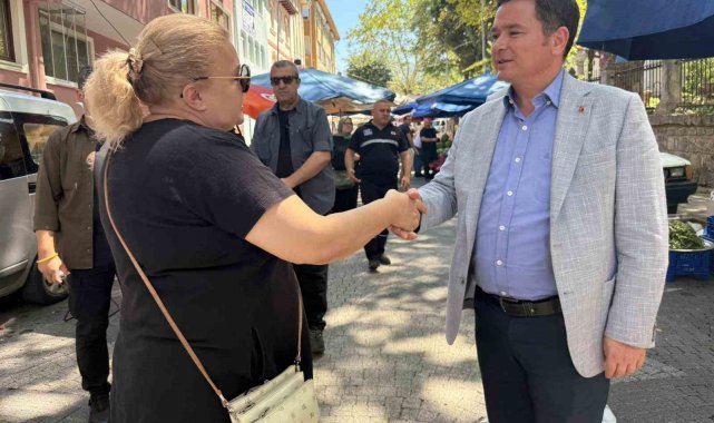 Pazar tezgâhlarını tek tek dolaşan Osmangazi Belediye Başkanı Erkan Aydın, vatandaşlarla da bir araya gelerek sohbet etti.