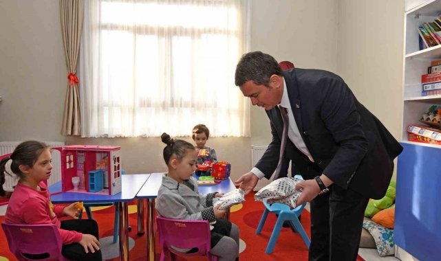 Program kapsamında protokol üyeleri tarafından çocuklara çeşitli hediyeler takdim edilirken, öğrencilerin mutluluğu yüzlerinden okundu.