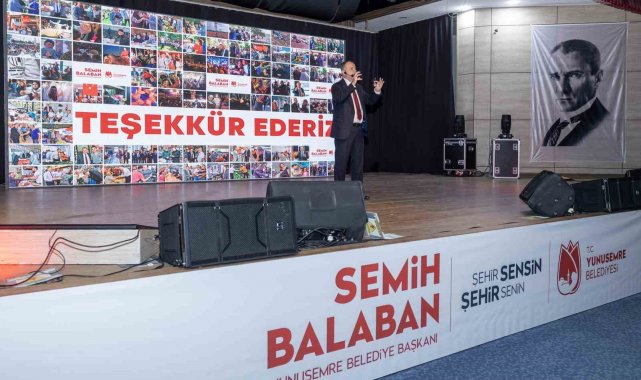 Konuşmaların ardından yeniden söz alan ve yönetimde geçen 14 aylık süreçte adil, katılımcı ve halk odaklı bir belediyecilik anlayışıyla çalıştıklarını dile getiren Belediye Başkanı Balaban konuşmasında, "Bugün sizlere Yunusemre'de birlikte yürüdüğümüz değişim yolculuğunun adımlarını anlatmak, yaptığımız hizmetleri sizlerle paylaşmak için bir araya geldik. Her bir projemiz, sizlerin yaşam kalitesini artırmak, kentimizi daha yaşanabilir hale getirmek için atılmış kararlı adımlardır. Belediyemizi ağır bir borç yüküyle devralmamıza rağmen, halkımız için çalışmaktan asla vazgeçmedik. Her adımımızda sizlerin güveni ve desteği bize yol gösterdi, güç verdi. Bugün geldiğimiz noktada, kaynakları doğru kullanarak tasarrufu ön planda tutuyor ve israfa izin vermiyoruz. Halkımızın yaşam kalitesini arttırmak için; kültür, çevre, sosyal destek ve eğitim gibi pek çok alanda kararlı adımlar atıyoruz. Her hizmetimizde, halkın parasını halka kazandırma ilkesiyle hareket ederek, sizlerin desteğiyle her zaman halk için, halk adına, halkla birlikte çalışmaya devam ediyoruz. Yarın ya da aynı azimle, aynı kararlılıkla çalışacağız. Birlik ve dayanışma içerisinde: ''DAHA mutlu, DAHA umutlu, DAHA huzurlu, DAHA sağlıklı, DAHA iyi bir Yunusemre''için hep birlikte ilerleyeceğiz" dedi.