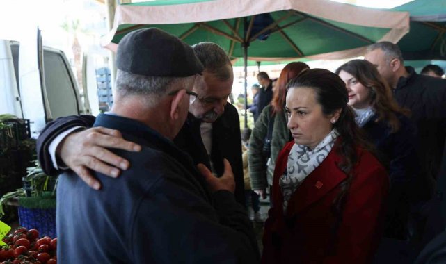 Yunusemre Belediye Başkanı Semih Balaban, CHP Manisa İl Başkanı İlksen Özalper ile birlikte Muradiye Mahallesi Pazar Yeri'nde tezgâh açan esnaf ve alışveriş yapan vatandaşlarla bir araya geldi. Pazar tezgâhlarını tek tek dola-şan Başkan Balaban ve İl Başkanı Özalper'e; CHP Yunusemre İlçe Başkanı Yal-çın Arcak, Belediye Başkan Yardımcısı Emine Özge Arslan, belediye meclis üyeleri, Özel Kalem Müdürü Seyit Ali Özmen ve Muradiye Mahalle Muhtarı Eyüphan Aykıran da eşlik etti. Ziyaret kapsamında esnafın ve vatandaşların talep ve önerilerini dinleyen Başkan Balaban, iletilen konuların ilgili birimlere aktarılması için not alarak gerekli talimatları verdi.