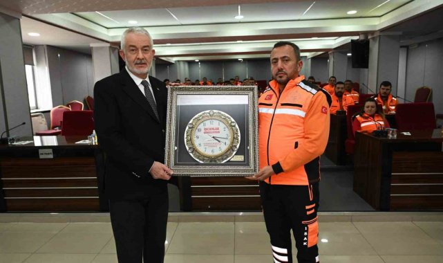 Konuşmaların sonunda ISAK ekibi INSARAG standartlarında aldığı 'Kentsel Arama ve Kurtarma Orta Ekip Akreditasyon Belgesi'ni Belediye Başkanı Şükrü Başdeğirmen'e takdim etti. Ekip ayrıca Başkan Başdeğirmen'e Kahramanmaraş'ta 12 Şubat Mahallesi'ndeki 10 dairelik Erciyes Apartmanı'ndan 72 saat sonra kurtardıkları Gülten hanımın hatıra olarak verdiği duvar saatini takdim etti.