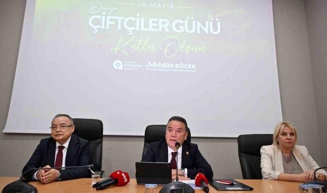 Antalya Büyükşehir Belediye Başkanı Muhittin Böcek, 14 Mayıs Dünya Çiftçiler Günü dolayısıyla Antalya'nın farklı ilçelerinden gelen çiftçiler, kooperatif ve dernek temsilcileriyle bir araya geldi. Başkan Böcek, üreticilere yönelik destekleri anlatarak, yerelden kalkınmanın önemine dikkat çekti.