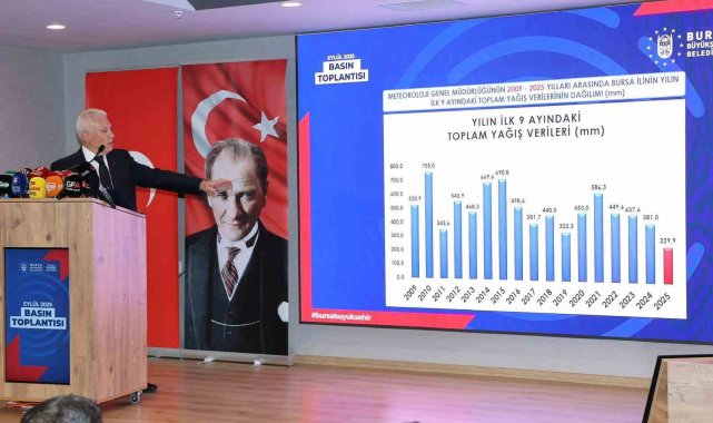 Bursa Büyükşehir Belediye Başkanı Mustafa Bozbey, su seviyesinin Doğancı'da yüzde 6,81, Çınarcık'ta yüzde 50 Nilüfer'de ise hiç kalmadığına dikkat çekerek, "Çınarcık bypass hattı şu anda kurtarıcı pozisyonunda. Her ihtimali göz önünde bulundurarak çözüm bulmak zorundayız. Çınarcık Barajı'ndaki suyun tamamını içme suyu olarak değerlendirmek istediğimizi DSİ"ye ilettik. Hiç yağmur yağmadığı ve planlı su kesintisi yapılmadığı takdirde bu şartlarda 6 Ekim tarihinde barajlardaki su tükenmiş olacak" dedi.