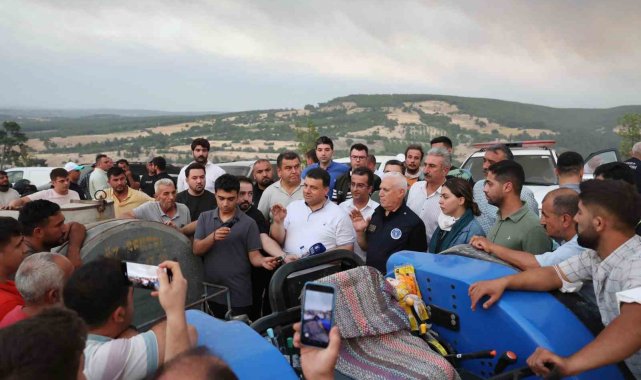 Daha sonra yangın tehlikesi yaşayan Çakmak Köyü'nü ziyaret ederek vatandaşlara geçmiş olsun dileklerini ileten Başkan Mustafa Bozbey ve beraberindekiler, köylülerin ve ekiplerin yangın mücadelesine ortak oldu.