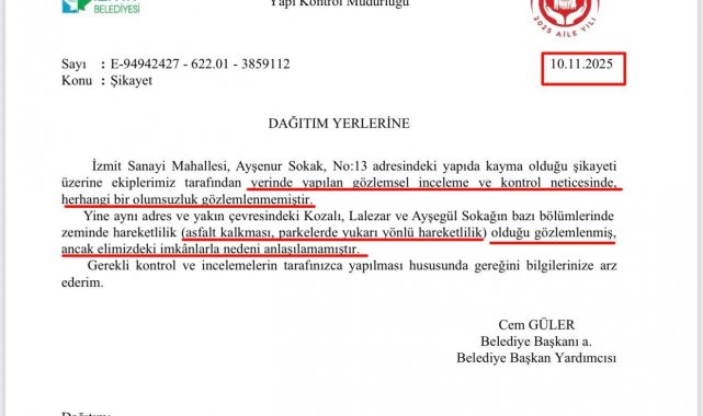 "Oradaki binanın metrodan yıkıldığını açıklayan size, 10 Kasım tarihinde İzmit Belediyesi'nden büyükşehire gelen şu yazıyı göstermek istiyorum. İzmit Sanayi Mahallesi'ndeki bir yapıda kayma olduğu şikayeti olduğu üzere herhangi bir olumsuzluk gözlemlenmediğini yazmışsınız. Belediyenizdeki imkanlar ile küçük bir kaymanın nedenini anlayamadınız da binanın metrodan kaynaklı olduğunu nasıl anladınız. Bu tespit edilemezken, metronun üzerinde yıkılan binanın tespitini hangi yetkinlikte yaptınız?" ifadelerini kullandı.