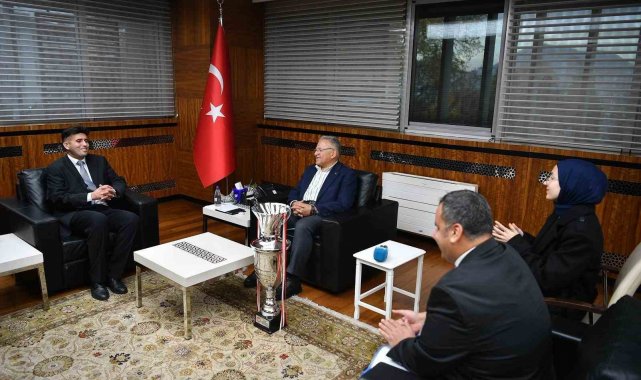 Kayseri Büyükşehir Belediye Başkanı Dr. Memduh Büyükkılıç; Sesi Görenler 1. Ligi'nde şampiyonluğa ulaşan Kayseri Görme Engelliler Spor Kulübü'nü makamında ağırladı. Başkan Büyükkılıç'a şampiyonluk kupası, takım tarafından sunuldu.