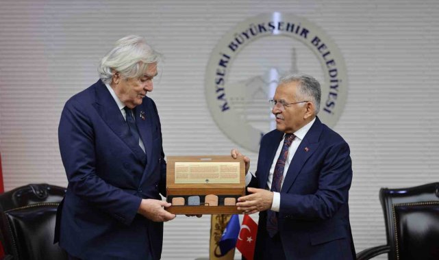 Başkan Büyükkılıç, Lupatelli'ye günün anısına Kültepe Kaniş Karum'dan çıkarılan tabletlerin replikasını hediye etti.