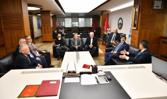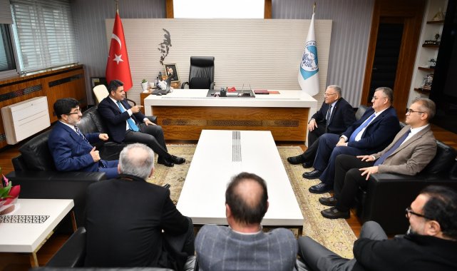 Kayseri Büyükşehir Belediye Başkanı Dr. Memduh Büyükkılıç, Ulaştırma ve Altyapı Bakan Yardımcısı Osman Poyraz ile Ulaştırma ve Altyapı Bakanlığı Altyapı Yatırımları Genel Müdürü Dr. Yalçın Eyigün'ü makamında konuk etti.