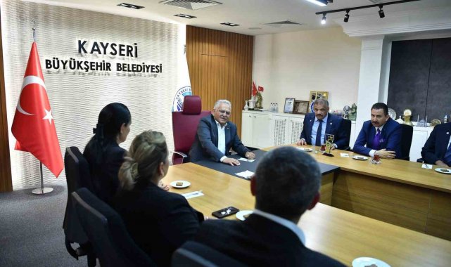 Kayseri Büyükşehir Belediye Başkanı Dr. Memduh Büyükkılıç; Avrupalı Kayserililer Birliği Başkanı Yeşim Akpınar, Avrupa Gurbetçi Kayserili İşverenler Birliği Başkanı Ali Hızar ve yönetim kurulu üyelerinden oluşan konuklarını başkanlık makamında misafir etti.