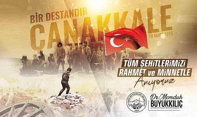 Kayseri Büyükşehir Belediye Başkanı Dr. Memduh Büyükkılıç; 18 Mart Şehitleri Anma Günü ve Çanakkale Deniz Zaferi'nin 110'uncu yıl dönümü dolayısıyla yayımladığı mesajda, Türk milletinin kahramanlık ruhunu ve Çanakkale'deki zaferin dünya tarihindeki yerini vurguladı.