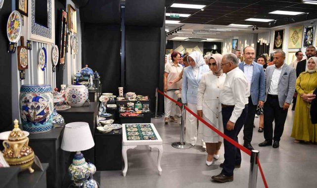 Törenin sonunda kurdele kesimiyle birlikte sergi ziyarete açıldı. Başkan Büyükkılıç, eserleri tek tek inceleyerek kursiyerlerden ve eğitmenlerden bilgi aldı.