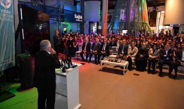 Başkan Büyükkılıç, "Burada Milli Uzay Programı kapsamında uzaya giden astronotlarımızın birebir eşyalarının sergilendiği, hepimizi heyecanlandıran boyutuyla önemli bir sergi var. Yine yaklaşık 7,5 milyon yıl önce yaşamış hayvanların fosillerinin sergileneceği iki boyutlu bir çalışmayla baş başa bulunacağız. Kızılırmak kenarında Yamula bölgesinde Taşhan ve Kuşçu bölgesinde yapılan kazılardan 7,5 milyon yıl önce yaşamış olan fosiller çıkarıldı. Hocalarımıza ve ekiplerine teşekkür etmek istiyorum" ifadelerini kullandı.
