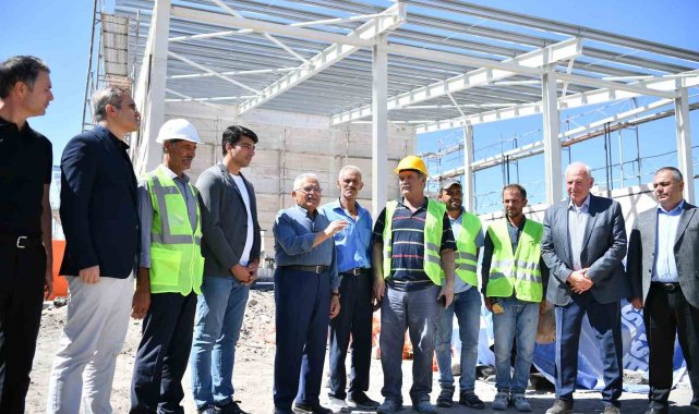 Başkan Büyükkılıç'tan Eğribucak'taki yeni itfaiye binasının inşaatına yerinde inceleme