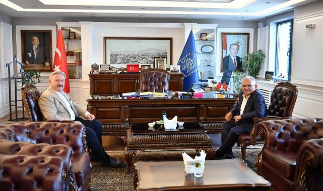 Kayseri Büyükşehir Belediye Başkanı Dr. Memduh Büyükkılıç, Melikgazi ilçesinde devam eden ve planlanan yatırımları değerlendirmek üzere Melikgazi Belediye Başkanı Mustafa Palancıoğlu'nu makamında ziyaret etti.