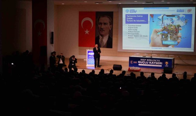 Başkan Büyükkılıç, ihalesi gerçekleştirilen Kartal Kavşağı ve Bağlantı Yolları Projesi kapsamında yapılan yeni yollar ve altyapı çalışmalarını kapsayan tüm hazırlıklar hakkında da bilgiler paylaşarak, "Proje sadece bir kavşaktan ibaret değil. Bütün bu altyapıyla ilgili desteklerimizi sağlayarak, vatandaşımızı rahatlatan yaklaşım içerisinde çalışmalarımızı sürdürüp en kısa zamanda da 12 ay maksimum, Kayseri'mize kazandırma yönündeki çalışmamızı sizlerle paylaşıyoruz" dedi. Büyükkılıç, Büyükşehir'in yatırım ve projelerinden katlı kavşaklar, köprüler, yeni yol ve sıcak asfalt çalışmaları, ulaşım alanında imza atılan 3 türbinden oluşan RES projesi, elektrikli otobüslerle genişletilen otobüs filosu, Kaybis uygulamaları, bisiklet yolları, Kapuzbaşı Şelaleleri, Erciyes Kayak Merkezi, Sultan Sazlığı, Kültepe, Soğanlı Vadisi, Koramaz Vadisi başta olmak üzere turizm çalışmaları ile Erciyes Yüksek İrtifa Kamp Merkezi'nin faaliyetlerini sıraladı. TÜRKSOY Dünya Kültür Başkenti Kayseri vurgusu da yapan Başkan Büyükkılıç, "İnşallah Türk cumhuriyetlerinin kültür başkenti olacağımıza inanıyorum" dedi. Cumhuriyet Meydanı'nın Kale çevresindeki düzenleme çalışmalarına dair de bilgiler veren Büyükkılıç, Kayseri Mahallesi'nde sürdürülen restorasyon çalışmalarına, Kültepe Kayadan Oyma Müze, Mimar Sinan Kent Müzesi çalışmalarına da değindi. Büyükkılıç, inanç turizmine yönelik turizm rotaları çalışmaları kapsamında hizmetlerin de sürdüğünü belirterek, Koramaz Vadisi'nden kültür yolu gezilerine, İl Halk Kütüphanesi'nden Kent Müzesi'ne kültür ve turizm projelerinden bahsetti. Adeta 6'ncı üniversite gibi hizmet veren KAYMEK kurslarından bahseden Başkan Büyükkılıç, Kayseri Kariyer Merkezi, Engelsiz Yaşam Merkezi, Emekliler Kafeteryası, Çamaşır Yıkama Merkezi, sosyal yaşam merkezleri, hasta ve hasta yakını misafirhaneleri ve Saffet Arslan Palyatif Bakım Merkezi, alzhemier merkezi gibi sosyal yardımlar ve sağlık hizmetleri ile tesisleri tek tek anlattı. Kayseri'de kentsel dönüşümün 1994 yılından beri planlandığını ifade eden Başkan Büyükkılıç, Büyükşehir'in ödüllü kentsel dönüşüm projesi Oruçreis'ten ve Sahabiye, Alsancak ile Camikebir kentsel dönüşüm sürecinden bahsetti. Ayrıca ilgi dolu, coşkulu Gastronomi Günleri'nden de söz eden Büyükkılıç, Kayseri'nin bir gastronomi şehri, merkezi olarak anılması doğrultusunda çalışmalarını sürdürdüklerini paylaştı. Kayseri'de, Bilim Festivallerinden, Mobil Dijital Gençlik Merkezi'nden de bahseden Büyükkılıç, sözü Erciyes Kayak Merkezi'ndeki faaliyetlerine getirdi ve Erciyes'e gelen konukların çok çeşitli ülke ve şehirlerden olduğunu belirtti. Büyükkılıç, dünyadaki en iyi 25 kayak merkezi içerisinde Türkiye'den ilk ve tek merkezin Erciyes Kayak Merkezi olduğunu vurguladı. Büyükkılıç ayrıca Erciyes'ten yılın 12 ayı faydalanma noktasında yapılan diğer proje ve çalışmalardan söz ederek, gerek spor ve gerekse turizm noktasında önemli etkinlikler yapıldığını kaydetti. Büyükkılıç, Erciyes'te de Kayseri genelinde de BMX Parkuru, tenis kortları, kayak akademisi, spor okulları ile bu gibi pek çok tesis ve faaliyet ile Kayseri'yi sporun merkezi haline getirdiklerini, bu doğrultuda ise Altın Bayrak alarak Avrupa Spor Şehri ünvanına layık görüldüklerini hatırlattı. Ayrıca Avrupa'da spor konusunda en aktif belediye ödülü de aldıklarını duyuran Büyükkılıç, Büyükşehir tarafından Dünya Spor Başkenti başvurusu yapıldığını da belirtti. Başkan Büyükkılıç, Kayseri'nin hizmetten hizmete koştuğunun altını çizerek, başta Recep Tayyip Erdoğan Millet Bahçesi içerisinde yapımına başlanan Merkez Cami olmak üzere hayırsever ile Büyükşehir iş birliğinde inşa edilen, edilmekte olan camilerden de söz etti. Toplantıda yaptığı konuşmada Başkan Büyükkılıç, sokak sağlıklaştırma çalışmalarını da anlatarak, çevreci faaliyetlerinden olan katı atık depolama tesisinden, depo gazından, güneşten ve rüzgârdan temiz enerji üretiminin yanı sıra hobi bahçelerinden, Beydeğirmeni Besi Bölgesinden bahsetti. Afete hazır dirençli kent çerçevesindeki mikrobölgeleme ve diğer faaliyetlere ilişkin de bilgiler veren Büyükkılıç, sözü 6 Şubat depremlerindeki destek çalışmalarına getirdi.