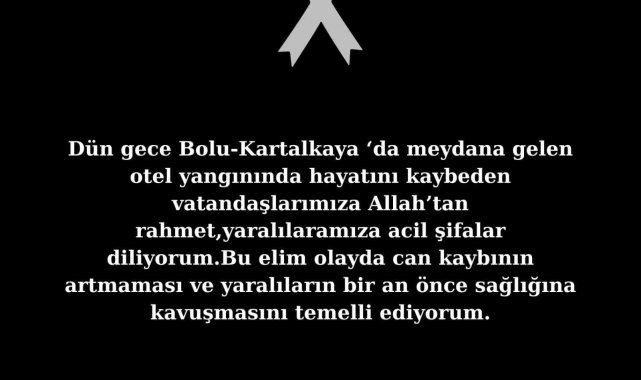 Amasra Belediye Başkanı Recai Çakır, Bolu Kartalkaya Kayak Merkezi'ndeki bir otelde meydana gelen ve 10 kişinin hayatını kaybettiği, 30 kişinin yaralandığı yangın nedeniyle taziye mesajı yayımladı.
