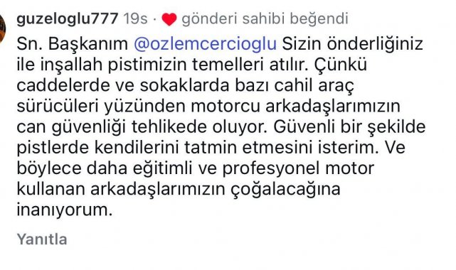 Aydınlı motosiklet tutukunu gençlerin sosyal medya üzerinden yaptığı 'pist' çağrısına kayıtsız kalmayan Aydın Büyükşehir Belediye Başkanı Özlem Çerçioğlu, motoisklet pisti için projenin gündeme alındığını duyurdu.