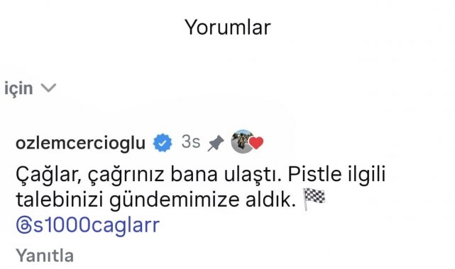 Aydın Büyükşehir Belediye Başkanı Özlem Çerçioğlu'nun, sosyal medyada bir vatandaşın Aydın'a yarış pisti yapılması yönündeki talebe verdiği yanıt, kısa sürede geniş yankı uyandırdı. Başkan Çerçioğlu'nun yorumu, sosyal medya kullanıcıları tarafından yoğun ilgi görürken, çok sayıda vatandaş tarafından takdirle karşılandı. Sosyal medya üzerinden yapılan bir paylaşımda bir kullanıcı, Aydın'a yarış pisti yapılması talebini dile getirerek, "Yaparsa Özlem Başkan yapar" ifadelerini kullandı. Söz konusu paylaşıma yorum yapan Başkan Çerçioğlu, "Çağlar, çağrınız bana ulaştı. Pistle ilgili talebinizi gündemimize aldık" ifadeleriyle talebe karşılıksız kalmadı, projenin gündeme alındığını belirtti.
